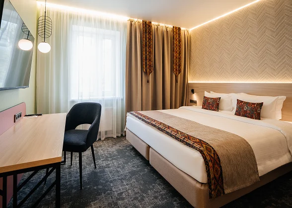 кроватью King Size размером (180x200) . Рабочая зона с просторным столом