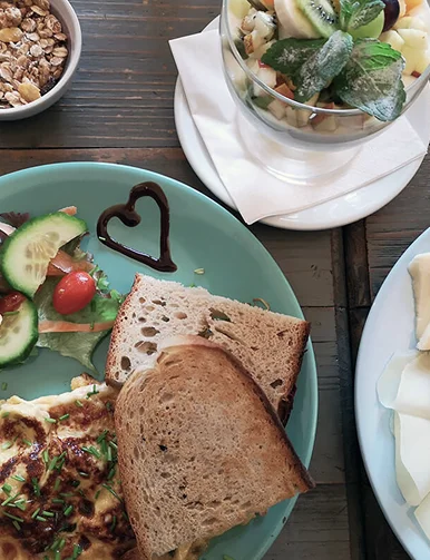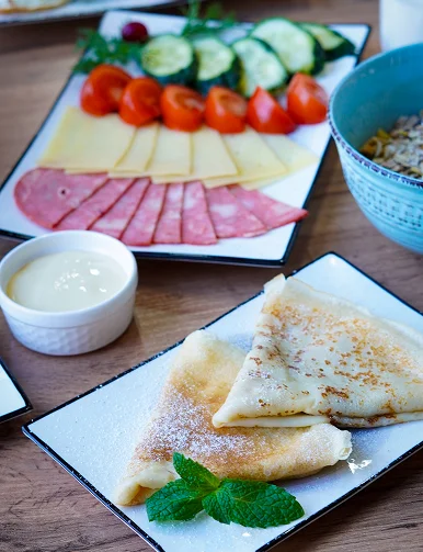 Завтрак подается с 7:00 до 11:00 ежедневно. Фирменный завтрак Yourta накрывается по системе «шведский стол». Дополнительно доступно меню континентальных завтраков.